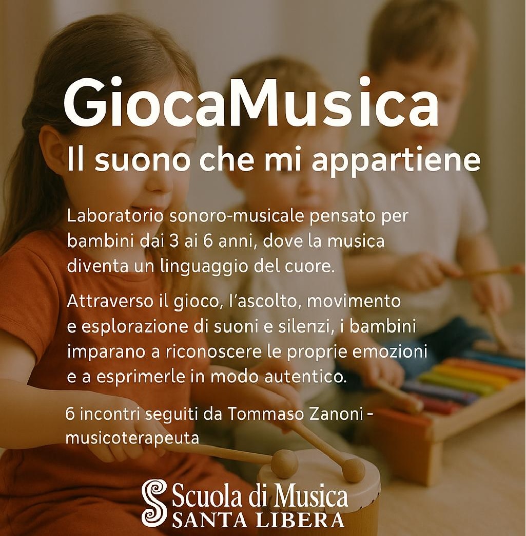 GiocaMusicaIl suono che mi appartieneLaboratorio sonoro-musicale pensato per bambini dai 3 ai 6 anni, dove la musica diventa un lingua.....